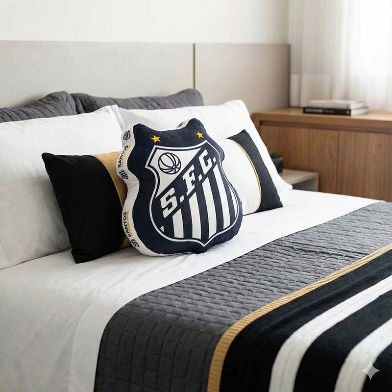 Almofada Formato Santos Depois de um dia cheio de aventuras empurrando o Peixão nas arquibancadas, você precisa de uma mãozinha para marcar contra o sono? A gente te ajuda! Com enchimento em fibra e um toque macio e aveludado, essa é a companhia ideal para as suas tardes no sofá! Não importa qual é a aventura, essa almofada te acompanha em todos os momentos!