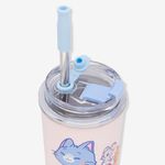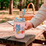 O copo é importado, feito em aço inoxidável e plástico, possui detalhes incríveis que vão fazer você se apaixonar! Se você quer um copo que acompanhe e te hidrate por onde você for, a gente te ajuda! Com 300ml de capacidade, e parede dupla que ajuda a manter a temperatura da bebida por muito mais tempo! Com uma tampa rosqueável para evitar vazamentos na bolsa ou mochila, além de contar com um canudo de aço inoxidável incrível com um protetor de silicone! Não importa qual é o rolê, esse copo te acompanha em todas as suas aventuras!