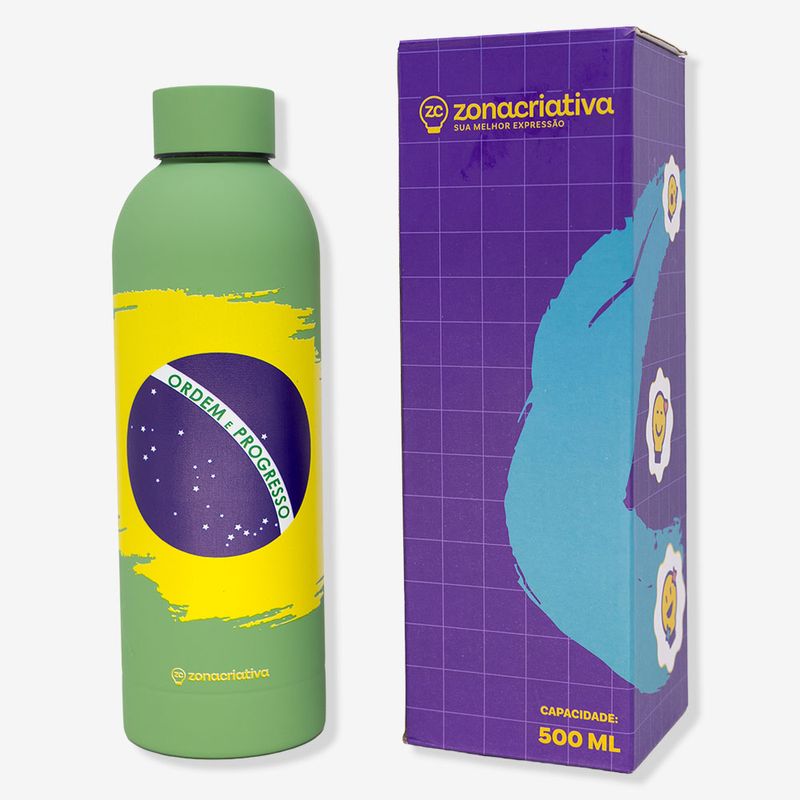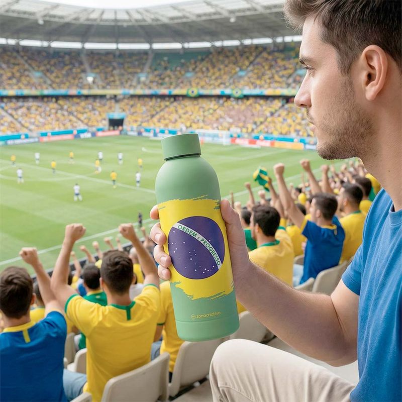 Vai passar o dia na arquibancada apoiando nossa seleção, mas você não consegue marcar gol contra a sede? A gente te ajuda! Com 500ml de capacidade para você ganhar todas as partidas! Com uma pegada confortável, e uma tampa rosqueável, é a companhia perfeita para a sua mochila!