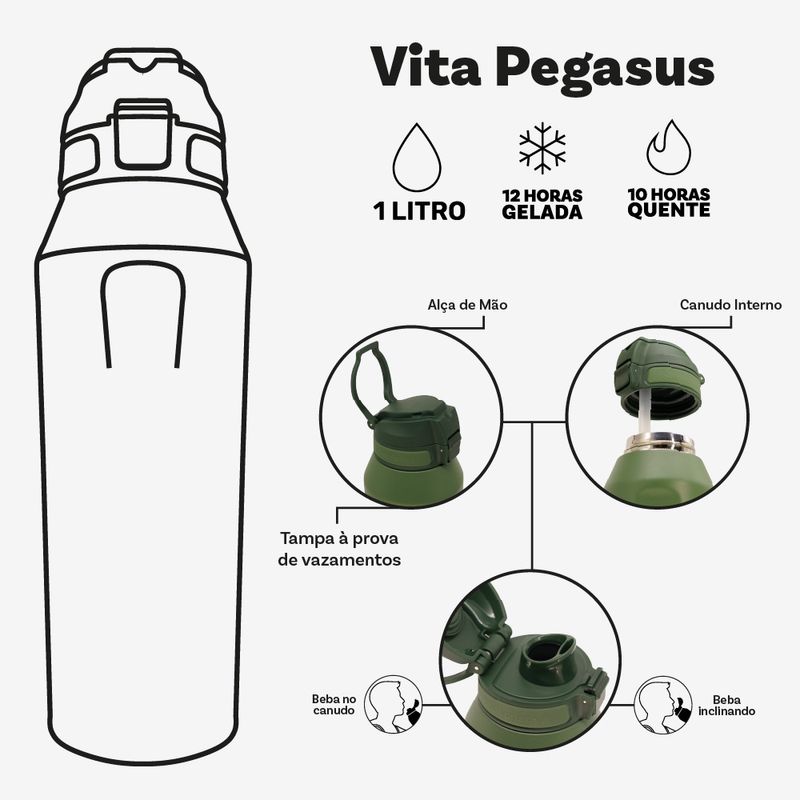 Muita sede? Abra, beba, vita e repita! Com 1L de capacidade que te acompanham no escritório, academia e faculdade! E não precisa se preocupar com vazamentos durante a maratona do dia a dia, com tampa rosqueavel, um canudo e uma trava eficiente, você pode andar de cabeça para baixo que não vaza nada! Além de contar com uma alça que facilita carregar sua Vita durante seus passeios!
