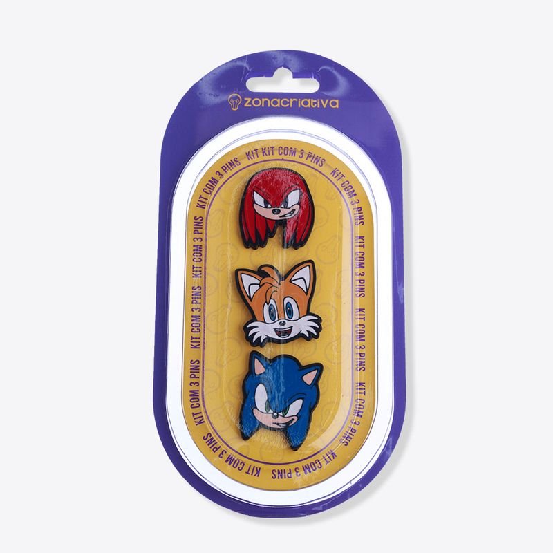 Kit Pins Sonic Se você é gamer e ama deixar as suas coisas com a sua personalidade, a gente te ajuda! Com esse kit pin você traz seus personagens favoritos para o seu mundo! São 3 pins feitos em metal Zamak, para você personalizar sua mochila, roupas e tudo o que você quiser!