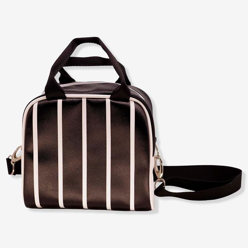 O produto é produzido em território nacional, feito em tecido sintético, possui detalhes incríveis que vão fazer você se apaixonar! Com um compartimento principal, possui uma alça de mão e uma alça transversal removível! Com o interior térmico, é uma excelente companhia para a sua semana, te acompanha no café, almoço e janta!