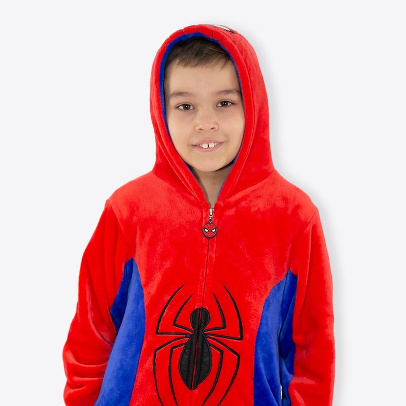 Macacão Kigurumi Infantil de 3 a 4 Anos Homem-Aranha - Marvel Você quer uma companhia quentinha para os dias mais gelados? A gente te ajuda! Com esse kigurumi os dias em que a previsão do tempo é de série, preguiça e muita pipoca ficam muito mais completas e divertidas! Não importa se a diversão é na cama ou no sofá da sala, esse pijama te acompanha em todos as brincadeiras!